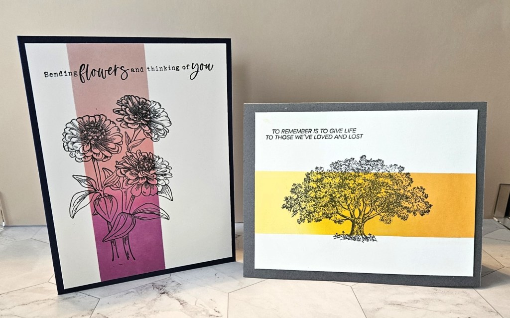 Card stock from the “Neutrals” collection was used for both card bases. The card size is a standard A2 (4 1/4 X 5 1/2)